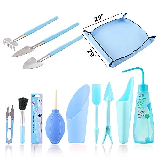 ★Comes with Enough Tools-13 Various Tools Include: 1 planting operation mat ,2 plastic bucket shovel set , 1 large drip bottle with curved mouth,3 succulent tools (shovel rake spake), 1 pair of curved tip tweezers, 1 pair of small scissors. 1 plastic cleaning brush,2 Transplanting tools, 1 air dust blower。
