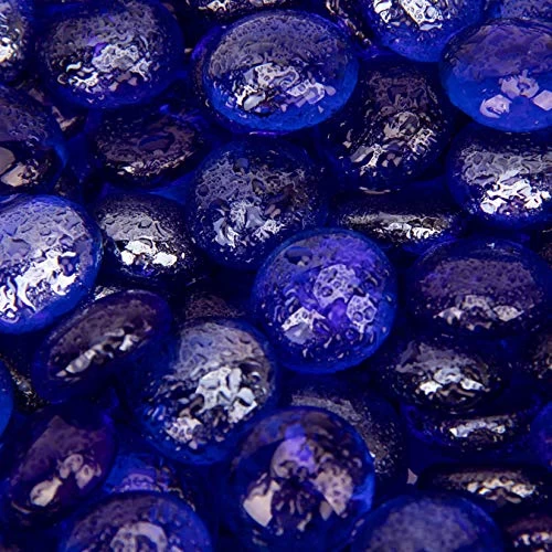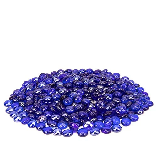 18 Pound Fire Glass Beads Fireglass Drops for Gas Fire Pit Fireplace Cobalt Blue Luster Reflective Decorative Glass Gems Rocks Pebbles Stone for Vase Fillers Aquarium Fish Tank Decoration Flat