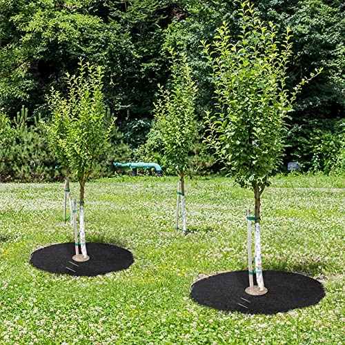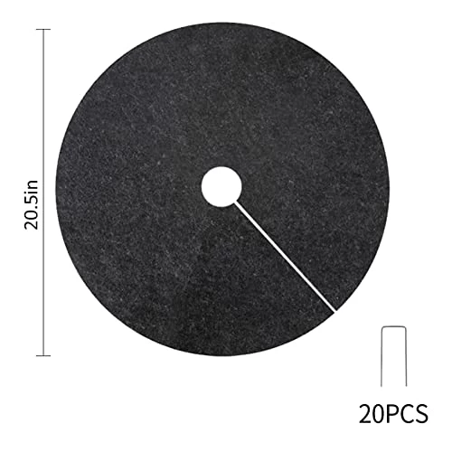 Easy to Use: With pre-cut holes and seams, our tree mulch ring can be easily slide onto your tree trunk of any sizes. In addition, the 20 landscape staples stakes will help you fix the mats effectively.