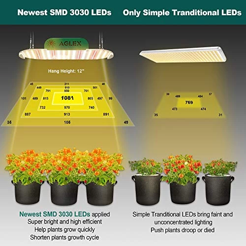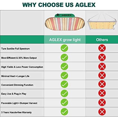 What Do You Get – AGLEX LED Grow Light, UL Power Cord, Stainless steel hanger, User Manual, 3 Years Warranty and 30 days money back guarantee. And Friendly In-time Customer Services.