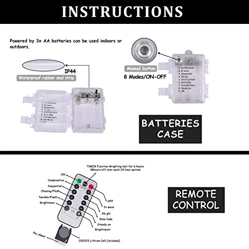 Battery Operated & Waterproof: Operated by 4. 5V 3 AA batteries (not included). A sealed battery case can protect from splashing water even heavy rain.