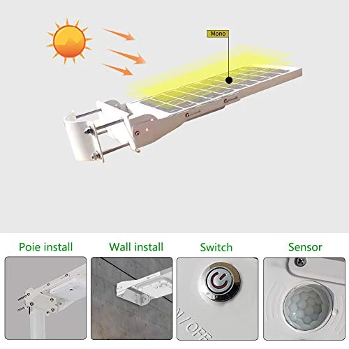 🌞Dusk to Dawn Sensor : This is a solar street light that automatically lights up for you to illuminate the yard, home the road, garage or deck, and automatically close at dawn. Built-in photoelectric sensor, Auto-on/Off Dusk to Dawn.