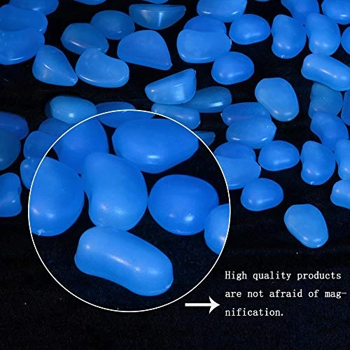Size: Blue Decorative glow stones measure 0. 8″-1. 2″/ 2-3 cm. 100 pieces per package. Pebble lighting that requires no electricity and no power. This glow stones pebbles graval stones are durable and weather resistant.