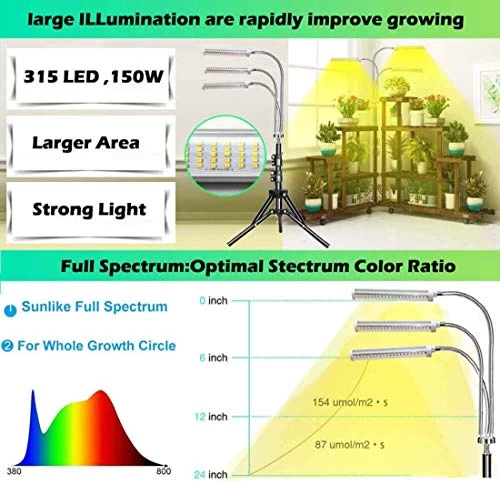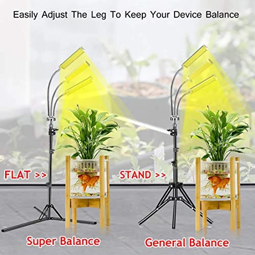 2020 Upgraded Floor Standing Grow Light: 3 in 1 LED floor plant lamp Gooseneck design ,bigger power and bigger PAR VALUE but balance coverage. Adjustable tripod stand extendable from 15 inches to 47 inches, just lock it at desired length for your preferred use, you can stand it on the floor adjust the desired angle according to the needs of the plant.