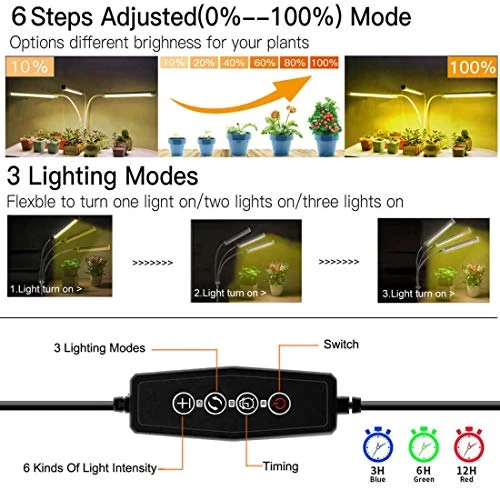 3 types modes: one lamp, two lamps and three lamps to meet different lighting requirements and provide more efficient lighting for more plants.