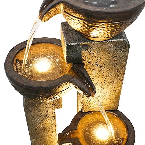 RELAXING WATER FLOW: Water trickles down through pots to mimic the sounds of a real waterfall, Built-in LED lights in the lower three basins,illuminates the rustic bowl fountain and water flow day and night,adding peaceful ambiance to your home or yard