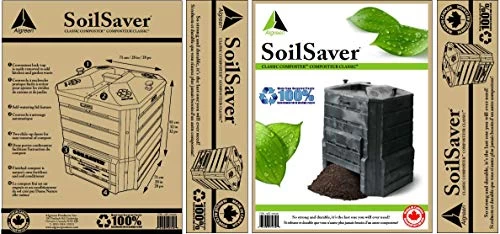 This Original SoilSaver Classic Compost bin Saves Money by Reducing Curbside pickup and Landfill Waste. It produces Nutrient Rich organic Soil for Healthier Plants and Gardens. Now you can help the environment while also helping your family save money with the SoilSaver. Soil produced is natures’ own fertilizer and Soil Conditioner. This Composter Includes a Locking Self-Watering Lid, 100-Percent Recycled Material, Military grade Rugged Construction, 2 Sliding Doors, openings for aeration and a free composting Guide, “A Sense of Humus.”
