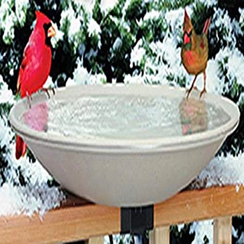 Attract a variety of wintering birds to your backyard with a warm, clean Mollema and Son birdbath. A Built-in thermostat prevents bird bath water from freezing, even on the chilliest winter days. Plus, thanks to the convenient “tilt-to-clean” deck rail mounting bracket, keeping the bowl tidy is simple. This product is covered by a one-year warranty against defects in materials and workmanship.