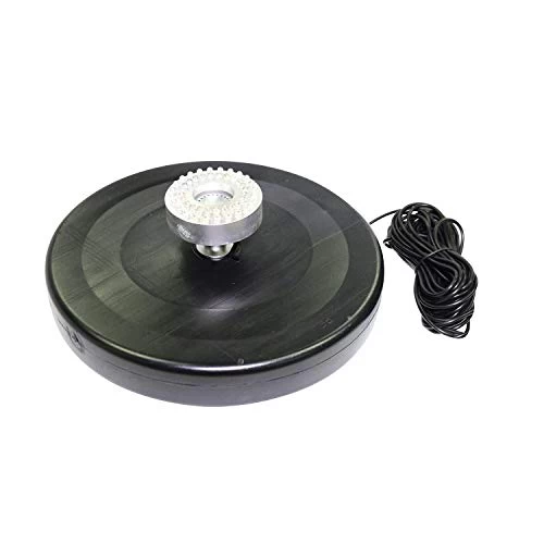 Add a playful spray head to your fountain or pond today. Joyful streams of water shoot 3-Feet upward out of this floating apparatus while bright LED lights highlight the whole show. Includes outdoor transformer with 33 foot cable.