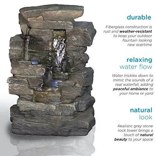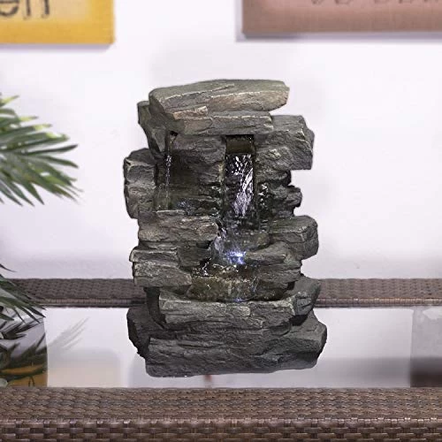The design adds a natural look, while the relaxing, gentle water falling helps create a tranquil atmosphere