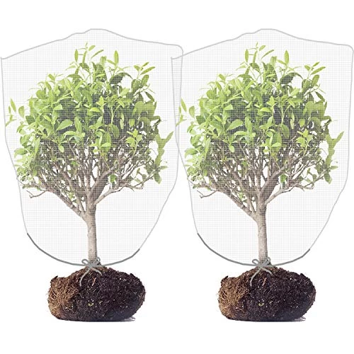 Alpurple 2 Packs Insect Bird Barrier Netting Mesh with Drawstring- Garden Bug Netting Plant Cover for Protect Plant Fruits Flower