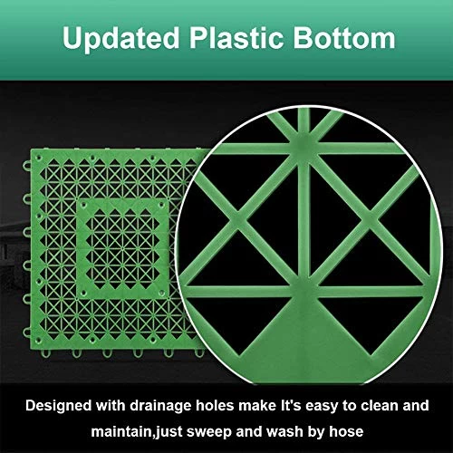 Updated Interlocking System – Updated Interlocking System Make The Pieces Be Easily Snapped Together And Not Easily Separate Like Our Competitors.it Is Also Simple To Install.keep The Artificial Grass Tiles In The Same Direction,Lock In The Tiles To Form A Strap And Lock In The Straps One By One.No Tools Needed,You Can Finish The Installation Easily.