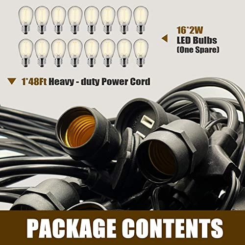 Long Lifespan & Energy-Saving – Unlike regular tungsten filaments Edison bulbs, our Brillihood string lights use LED filaments, won’t be easily burnt out and the service life approch 25000 hours, while the tungsten filaments bulbs only last about 1000 hours. The power of each Brillihood LED bulb is just 2W but it is as bright as an 11W Edison bulb! Low power consumption but more bright and saves more energy.