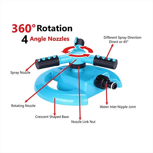 – BuVo Garden and Lawn Sprinkler features 360° rotating action 3 arm and 4 angle nozzle High pressure
