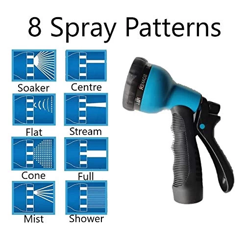 8 ADJUSTABLE PATTERNS : BuVo Water Gun, The hose nozzle is designed to FULL, SOAKER, STREAM, FLAT, SHOWER, CENTRE, CONE and MIST patterns, Cover ALL of your watering Requirements. Fits ALL USA Standard Garden HOSES, Equipped with 3 rubber O-Rings and 3/4 to 3/8 brass quick connector, provides a durable tight seal to avoid leakage The adjustable settings provide pretty water pressure for CAR washing, PETS shower, watering GARDEN or LAWN. 8 modes are for every watering