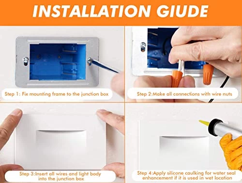 ✔LONG LASTING INDOOR/OUTDOOR LIGHTS:The wall mounted step light uses only 3W of energy and produces less heat.It can last for years to run.It also includes a rubber gasket to seal against moisture.The step lights have been tested by ETL to be used indoor or outdoor applicatons,such as stairway,pathway,driveway,patio or any other places where landscape lighting is required.