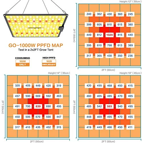 Dimgogo GO-1000 LED Grow Lights 2x2ft Coverage Full Spectrum Grow Lamp For Hydroponic Indoor Plants Seeding Veg And…