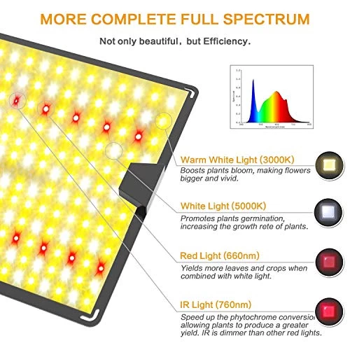 【Sunlike Full Spectrum】: It provides everything plants desired in the natural sunlight full spectrum (Contains Red 660-665nm, White 3000K,5000K and IR 760nm) for rapid growth and complete plant development, it’s ideal for growing plant’s from seeds to harvest.
