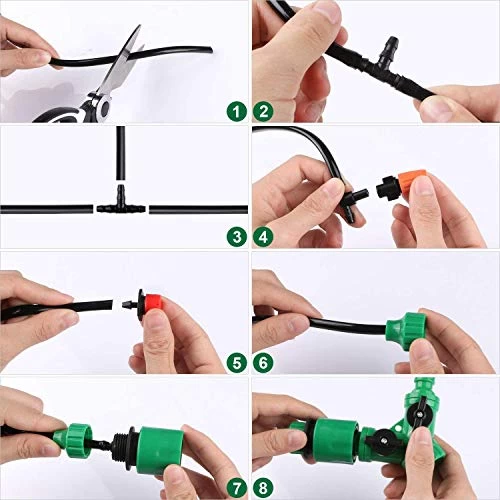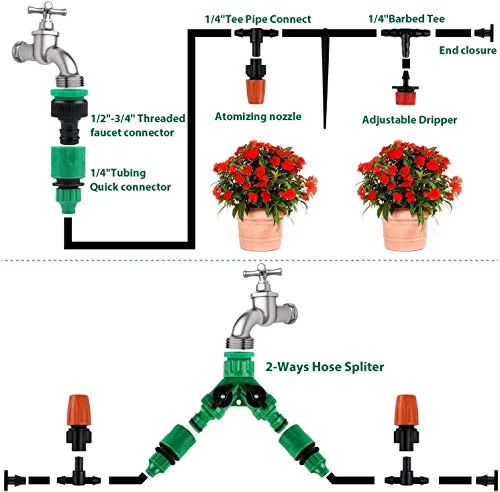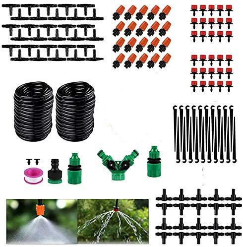 【Unique Unique design】 The micro nozzle can be adjusted to change or even deactivate the amount of water. The drop sprinkler kit contains all the components necessary to start the system via a tap or a garden hose. The watering area is enlarged so that you no longer have to manually water the plants. The garden hose is made of high quality material, resistant to UV rays, which can adjust the amount of water .