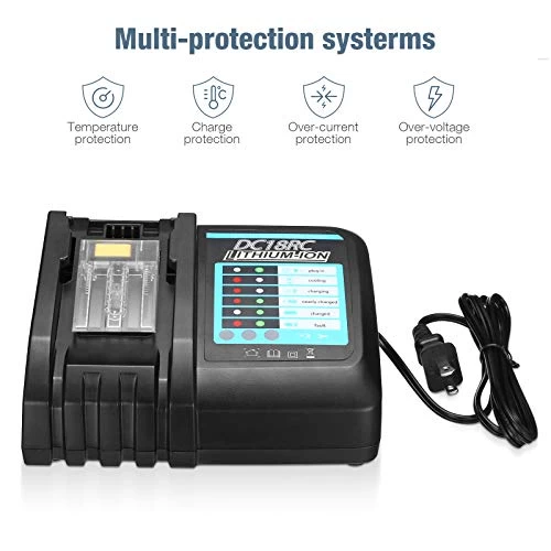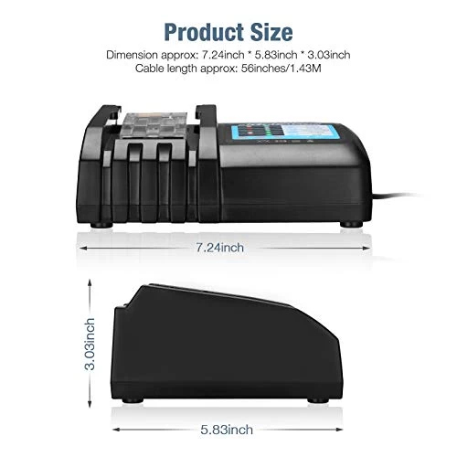 【Charger Specs】Brand new, Input: AC100V–240V, 50-60Hz, Replacement battery charger for DC18RC, DC18RA, Fits for all Makita 14.4V-18V LXT lithium ion batteries.