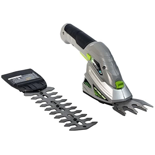 Cordless, lithium powered and two tools in one, the Earth wise garden trimmer combo set is great for gardening, lawn maintenance and small trimming jobs. Use the 6 inch hedge trimmer blade for quick touch ups or use the three inch grass shear blade for trimming around the garden or flower beds. No tools are needed to change blades. And the built-in rechargeable 3.6V lithium battery and charger mean no mess. No gas, no fumes. Earth wise is the clean air choice.