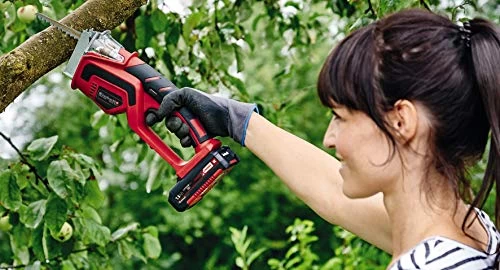 Einhell EINGEGS18LI GE-GS 18Li Power X-Change Cordless Pruner 18V Bare Unit The Einhell GE-GS 18Li Power X-Change Cordless Pruner has a high-quality KWB blade that has been made in Switzerland, with a length of 150mm. It will cut through very thick branches with diameters of up to 90mm effortlessly. The blade can be changed quickly and easily because no tools are required to do so. The removable branch handle enables branches to be cut easily in every situation and contributes to tireless working. Supplied as a Bare Unit, No Battery or Charger Supplied. Specification Input Power: 18V. Cutting Depth: Without Branch Handle: 90mm, With Branch Handle: 70mm. Saw Blade Length: 15cm. Weight: 1.14kg. Einhell A03 B0049