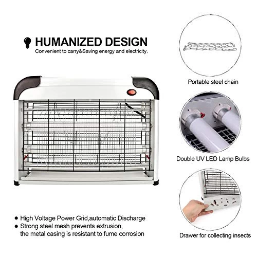 STOP IMPOSING YOUR FAMILIES IN TOXIC PEST CONTROL SPRAYERS! LiBa BUG ZAPPER HELPS YOU GET RID OF ANNOYING FLYING PEST IN MORE NATURAL WAY! Health Helper and Money Saver with long lifespan! How Does it Work? This indoor pest control device is designed to lure flies, mosquitoes and other annoying insect pests to the grid where they will be immediately zapped. With two ultraviolet bulbs which are especially designed to attract flying insects. A protective guard prevents people and pets from accidentally touching the grid. It Features with: · Most Powerful 2800V/20W UV Insect -Control light · 6000 ft² Effective & large area coverage · Removal, Washable insect-collecting tray for easy maintenance · Chemical Free, · Safe Grid Avoids accidental toothing. · Detachable Chain for wall mounting, keep it from pet and children. · Ideal for all indoor use: Protects and prevents against annoying and disease carrying flies and insects! No need to spread any harmful chemicals, the electronic fly zapper kills all insects without any chemicals