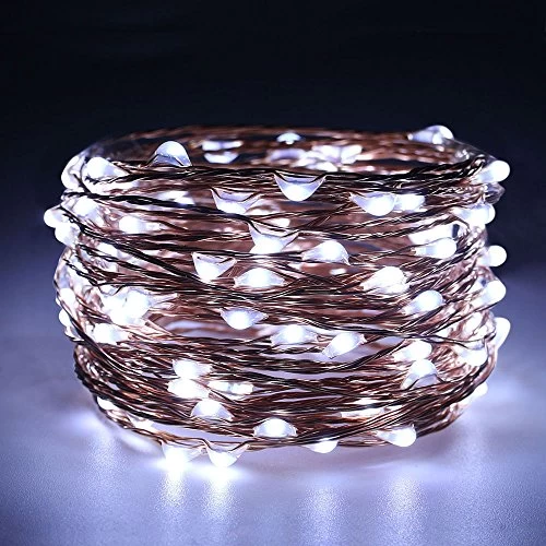 【Consistent Brightness】100 super bright cool white color LED string lights on 33 feet(10 meters) long ultra thin copper wire with 4 Inches distance between LED bulbs, and without voltage drop, the brightness is steady and consistent. Adapter cable length 4.9 feet (1.5 meters).