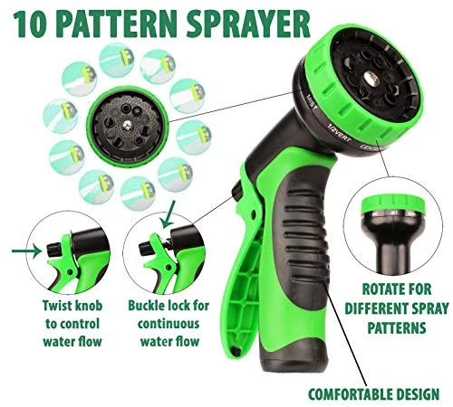 ✅ 【10 PATTERN SPRAY NOZZLE】-The Urban Grade hose comes with a 10 pattern hose spray nozzle. The nozzle is designed with ergonomic handgrip for comfortable operation and buckle for continuous and effortless use. The 10 pattern hose nozzle is perfect for many applications including house, car, floor, yard washing, garden watering, pet cleaning and many other uses.