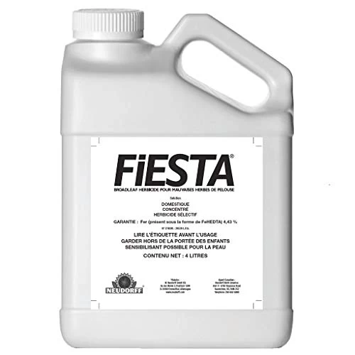 Fiesta Lawn Weed Killer is a selective, broadleaf weed killer that leaves turf healthy and weed-free using a specially formulated iron chelate solution. Fiesta works quickly, delivering visible same-day results, even in cool weather. And since Fiesta is made from iron, it has no unpleasant odor during or after application, and people and pets can reenter the treated area once the spray is dry. Suitable for broadcast application or spot treatment, Fiesta is a versatile, patented product that will help grass look its best, even in many pesticide restricted areas such as parks, golf courses, cemeteries, sports fields, and playgrounds. This product is ideal for lawn care where pesticide bans exist. covers up to 10,000 sq ft.