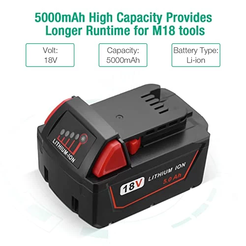 Replacement M18 battery and charger kit. Compatible with all MILWAUKEE M18 Battery and tools.