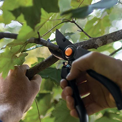 This pro-style pruner features adjustable blade tension to fit your hand strength and the toughness of the material you’re cutting, plus an angled cutting head that helps reduce wrist fatigue. A fully hardened, precision-ground steel blade stays sharp, a low-friction coating helps the blade resist rust and makes cutting even easier, and a built-in sap groove provides smooth operation.