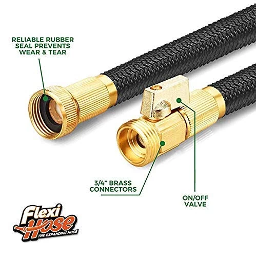 No more leaks! – say goodbye to your frustrating old leaking hose! FlexiHose’s solid 3/4 inches brass connectors & double latex pipe ensures leaks are a thing of the past! complete with a sturdy on/off valve, the super-strong FlexiHose can withstand up to 12 Bars of water pressure, up to temperatures of 113℉!