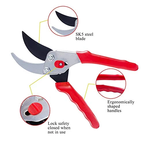 HIGH CARBON STEEL: Made of SK-5 steel, this garden pruning shears is sturdy and durable. There’s no need to worry about the blade bending or wrecking.