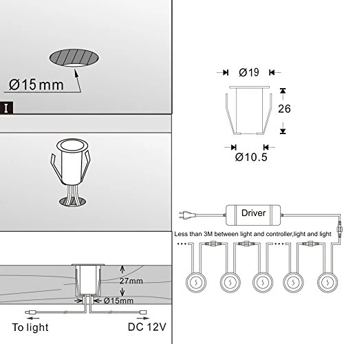 * Pack of 10 LED lights – Each light has 1 LEDs – Pack includes all wires, a plug in transformer.