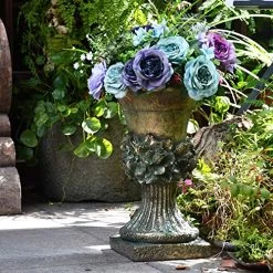Roman Cast Stone Ornate Rose Decor High Urn Planter Flower Plant Pot Vase Garden Deco Greek Figurine