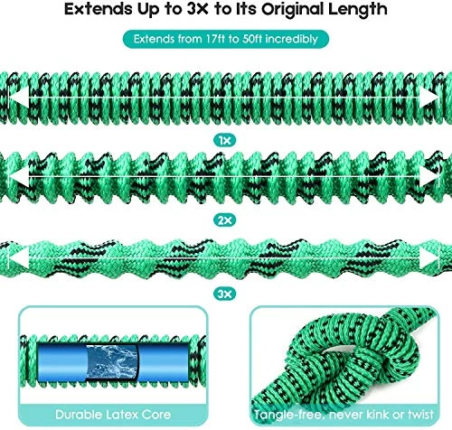 【MAGIC EXPANDING GARDEN HOSE】Expandable Hose thickest inner latex flexi hose pipe -This Garden hose flexible starts out from 17 FT,when the water is turned on the hose quickly expands 3 times in length(50 FT),and returns to its original length in minutes when water has gone.BONUS FREE Garden Hose Hanger help you to hook or store the lightweight water hose.