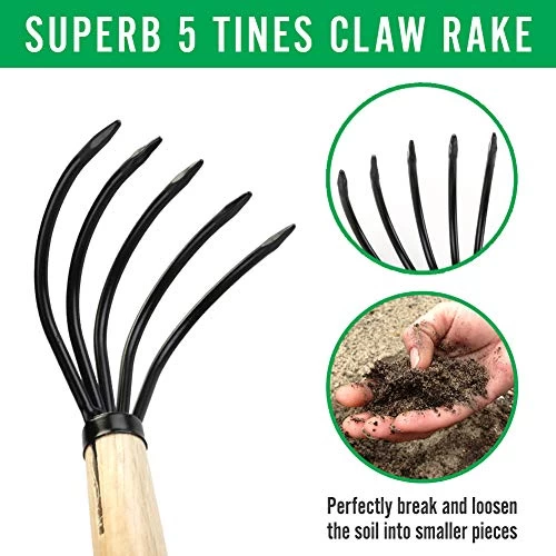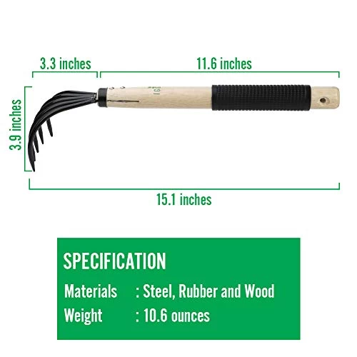 FULFILL YOUR GARDENING IDEA – You may have visions of how you want your garden to be and there are things to help you fulfill it. Small garden rakes are very useful for your backyard garden because it has many functions all at one. 5 tines of this hand cultivator perfectly break and loosen the soil to allow air and water to penetrate deeply and drain more effectively.