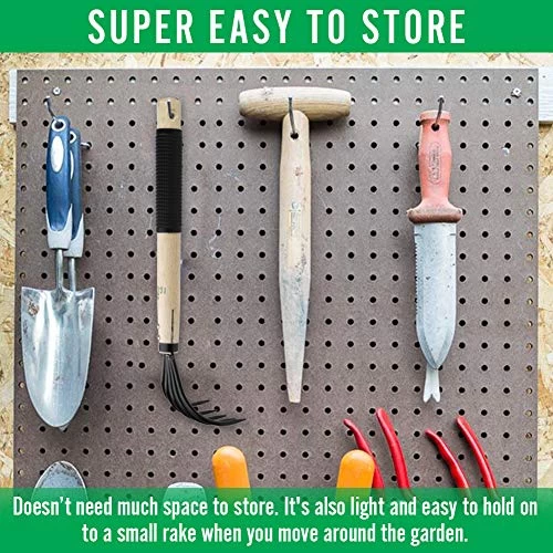 SUPER EASY TO STORE – This hand rake garden tool can be easily stored in your garage when not in use during evening or off-season with hole provided at the bottom end. It’s also light and easy to hold when you move around the garden.
