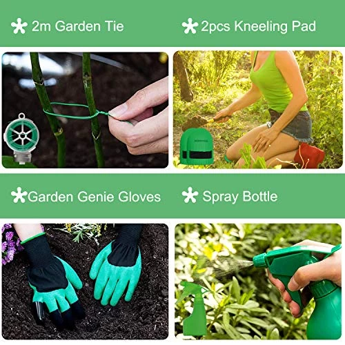 What you get- Dewinner 11 Piece Garden Tools Set, Pruning Shears, Weedier, hand Trowel, Transplanter, Cultivator, hand rake,Tote bag, Kneeling Pad and Sprayer,Garden Claw Gloves.Best Gift for Women and Men.