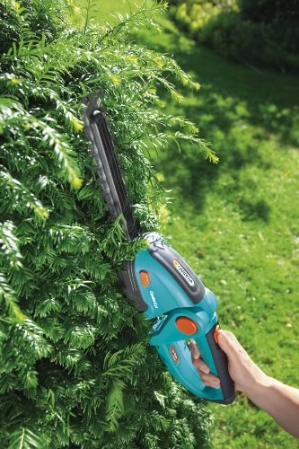 For easy, cordless shrub shears for shaping , to prune shoots, for trimming bushes and shrubs. Powerful easy care lithium-ion rechargeable batteries with LED display of the battery charging status. Swivelling comfort handle for optimum adaption to a natural holding position. Replaceable high-quality blade, precision ground, non-stick coated.