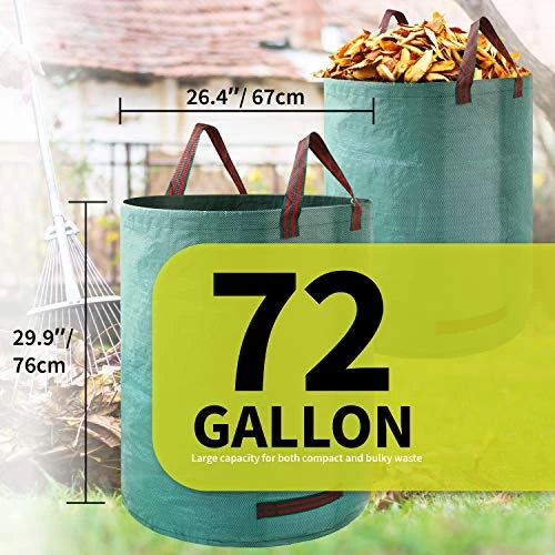 [DURABLE BAGS WITH REINFORCED HANDLES] The polypropylene woven trash bags are lightweight, durable, water-repellent, tear-resistant, and eco-friendly. The nylon handles are reinforced with double stitched webbing, making them extra sturdy.