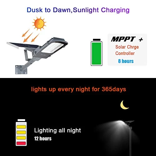 ◆HIGH BRIGHTNESS – 60W LED Integrated Solar Street Light with 40 high quality led lamp,produces 6000 Lumens of Bright mode with 6000K daylight white.