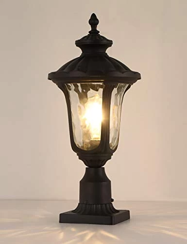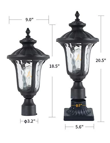 PPERFECT LIGHTING EFFECT – Die cast aluminum light housing applied to this post lamp light fixture, sturdy and anti-aging comparing to plastic, hammer glass lampshade,lighting effects can be absolutely stunning.