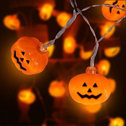 –Romantic Halloween Decoration Lights: Orange Halloween light string has 20 led lights, 9.8 FT long.The small pumpkin string light is a 3D design, bright and interesting, and shows the smiling face of a pumpkin.