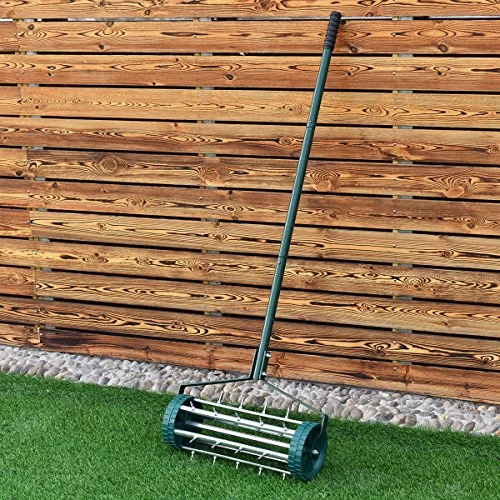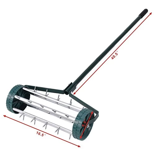 Our heavy duty green rolling garden lawn aerator roller will be loved by the gardening people. the Easy-Rolling Lawn Aerator Lets Air, Water And Nutrients Reach Grass Roots For A Greener, More Beautiful Lawn. Sturdy Wheels Roll Easily Over Any Turf, And Its Metal Spikes Aerate The Lawn Deeply And Completely Breathes New Life Into Your Lawn Without Harmful And Expensive Chemicals Complete With 3 Piece Tubular Steel Handle. Do not hesitate to buy one! Feature High quality and brand new A fast and efficient way to keep your lawn aerated Breathes new life into your lawn without harmful and expensive chemicals Complete with 3 piece tubular steel handle Easy-rolling lawn aerator lets air, water and nutrients reach grass roots This Rolling lawn aerator helps you grow a lush, green lawn Quick and easy to assemble Specifications Main color: green Material: steel and plastic Overall dimension: 17.7″x8.3″x49.6″(LXWXH) Diameter of roller: 6″ Please refer to the picture to get more size information Package include: 1 x Garden Lawn Aerator Roller