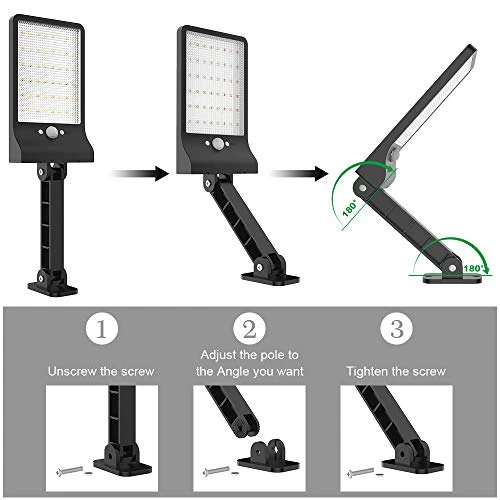【BRACKET ADJUSTABLE DESIGN and EASY INSTALLATION】 The led solar wall light can be swiveled 180° for up and down to adjust the motion sensor , Rotate to any angle to meet your diverse needs, can be mounted directly on the wall, including screws, rotatable fittings, multi-angle mounting