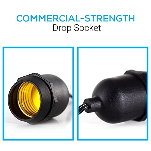 24 DROP SOCKETS – Our commercial string lights include 24 standard E26 sockets and 24 edison-style incandescent bulbs. Sockets will fit any bulb with compatible base so you have the option of switching up your outdoor string lighting style.