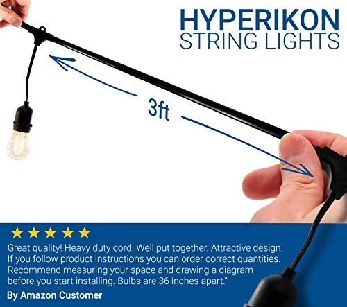 Hyperikon Outdoor String Lights, 48 Feet Patio Lights With 24 Dropped Sockets, 24 X 11W S14 Bulbs Included, Weatherproof…