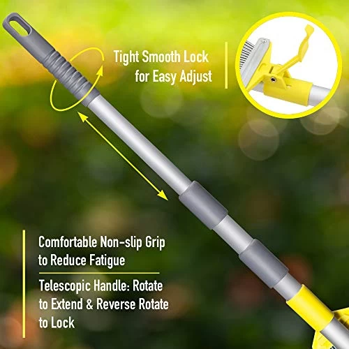 SMOOTH ADJUSTMENT & VERSATILE DESIGN: Telescopic Aluminum Handle helps easy adjustment of leaf rake head in seconds and makes long-time gardening an enjoyable experience. The tight lock switch keeps rake head fixed in any width. Adjust rake head width, one rake will do all the jobs both in tight and wide spaces